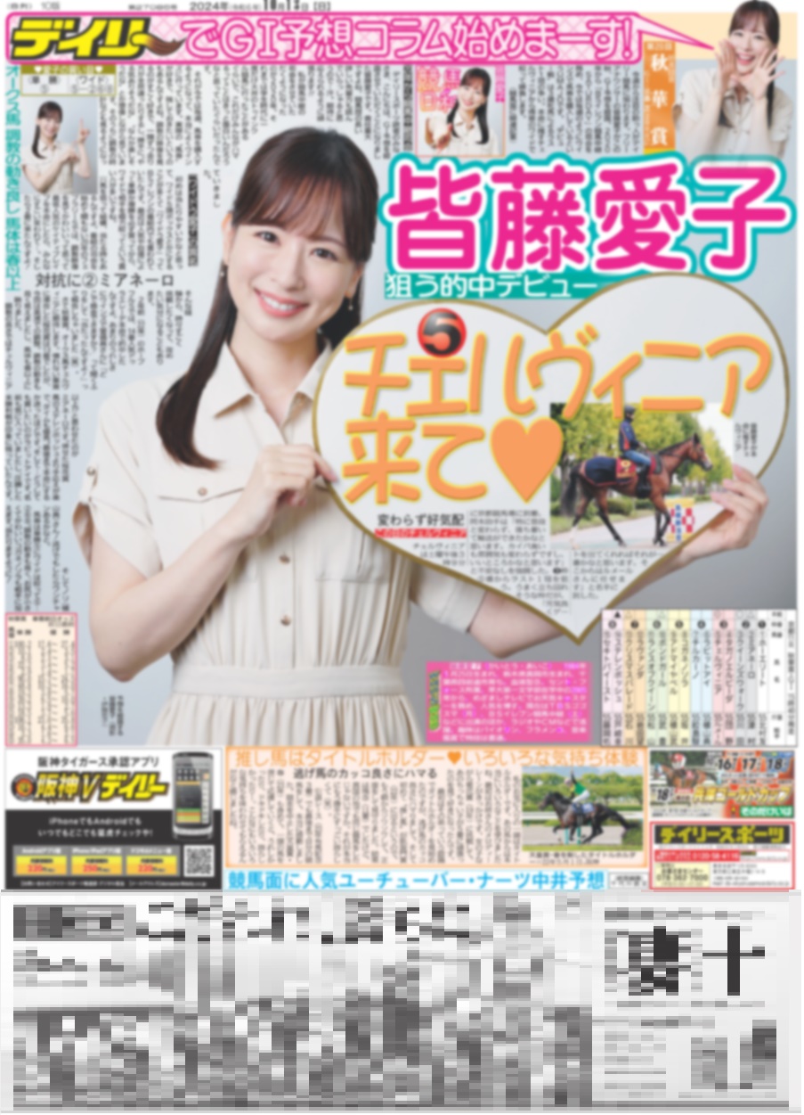 ・終面:皆藤愛子 競馬日和 狙う的中デビュー デイリーでG1予想コラム始めまーす!
