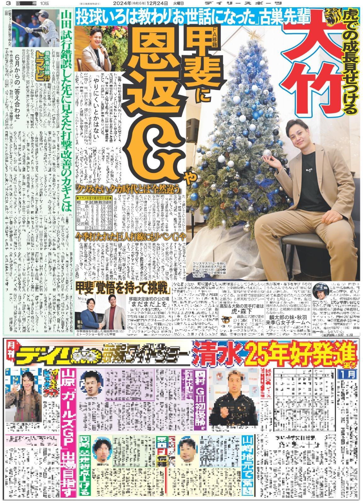 ★掲載内容:NCT WISH,M-1グランプリ,令和ロマン,大沢あかね,SMILE-UP.,STARTO,Hey!Say!JUMP,八乙女光,モーニング娘。,櫻井梨央,ふぉ〜ゆ〜,紅白歌合戦,佐藤健,永野芽郁,芦田愛菜,阿部サダヲ,はたらく細胞,伊藤健太郎,高田延彦,佐藤輝明,大竹耕太郎,神山雄一郎