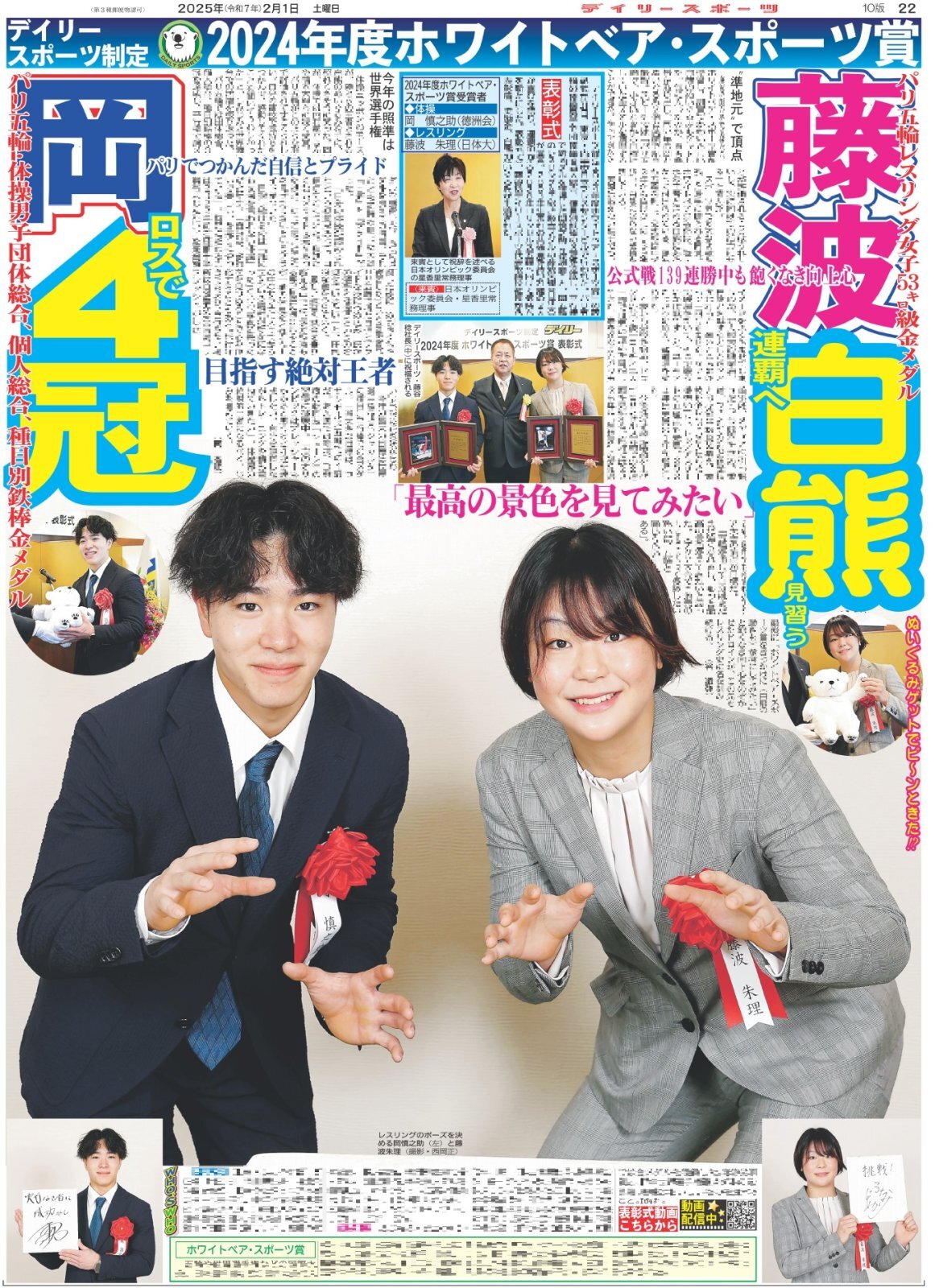 ・終面:2024年度ホワイトベア・スポーツ賞 岡 ロスで4冠 藤波 連覇へ白熊見習う