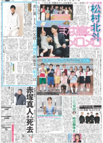 ★掲載内容:SMILE-UP.,STARTO,SixTONES,松村北斗,夜明けのすべて,なにわ男子,大橋和也,高橋恭平,大西流星,西畑大吾,道枝駿佑,長尾謙杜,藤原丈一郎,松下由樹,野村康太,GACKT,K,志田音々,松尾由美子,菅原知弘,市川由紀乃,中山優馬,古謝那伊留,Ami,小出恵介,シルビア・グラブ,佐藤輝明,山田脩也,岡田彰布,新庄剛志