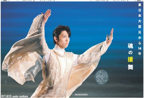 ・一面:羽生結弦 鎮魂の舞