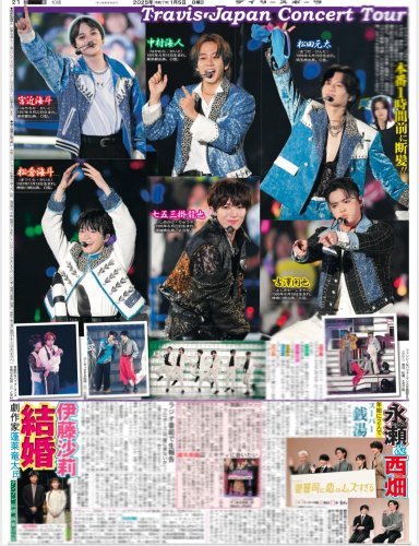 ★掲載内容:SMILE-UP.,STARTO,SixTONES,京本大我,見える子ちゃん,Hey!Say!JUMP,中島裕翔,みんな鳥になって,Travis Japan,中井貴一,小泉今日子,飯島直子,坂口憲二,内田有紀,続・続・最後から二番目の恋,浜崎あゆみ,Juice=Juice,段原瑠々,中尾明慶,仲里依紗,OCHA NORMA,田代すみれ,大谷翔平,伊原陵人,工藤泰成