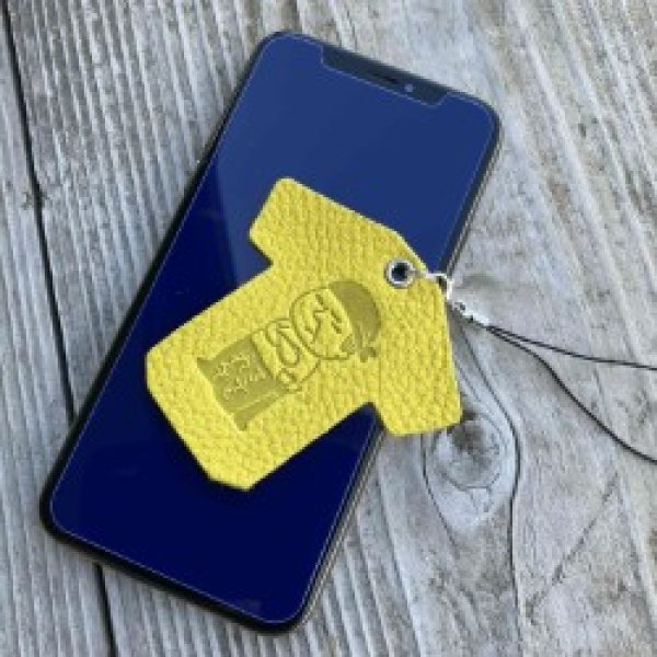 鹿革を使用したユニフォーム型のスマホクリーナー。