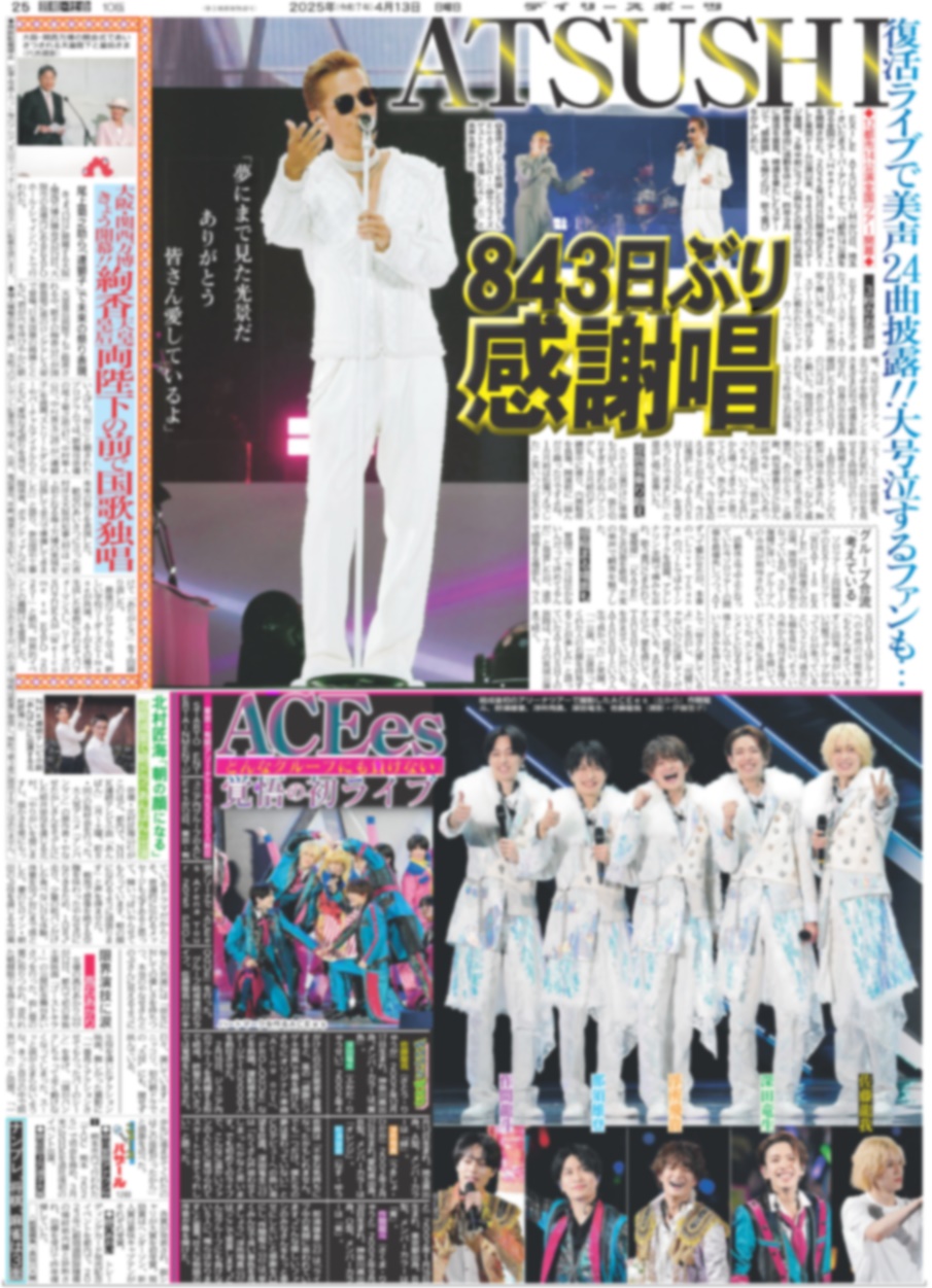 ATSUSHI 843日ぶり感謝唱 / ACEes 覚悟の初ライブ(東京版)2025年4月13日付