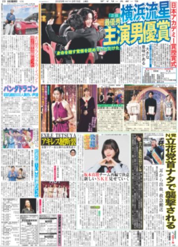 ★掲載内容:横浜流星,広瀬すず,TOBE,Number_i,平野紫耀,TWICE,SANA,櫻井翔,比嘉愛未,放送局占拠,TWS,山崎賢人,トリンドル玲奈,SMILE-UP.,STARTO,SixTONES,京本大我,ドジャース,大谷翔平,森下翔太,大竹耕太郎