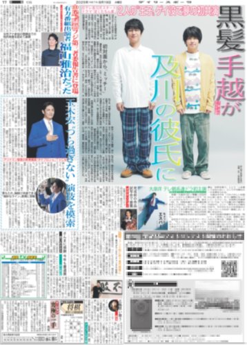 ★掲載内容:手越祐也,梅宮アンナ,ATEEZ,SMILE-UP.,STARTO,SixTONES,松村北斗,森七菜,高畑充希,EXILE,石田ゆり子,大東駿介,米津玄師,DAIGO,This is LAST,ニューヨーク,近本光司,村上頌樹,ドジャース,大谷翔平