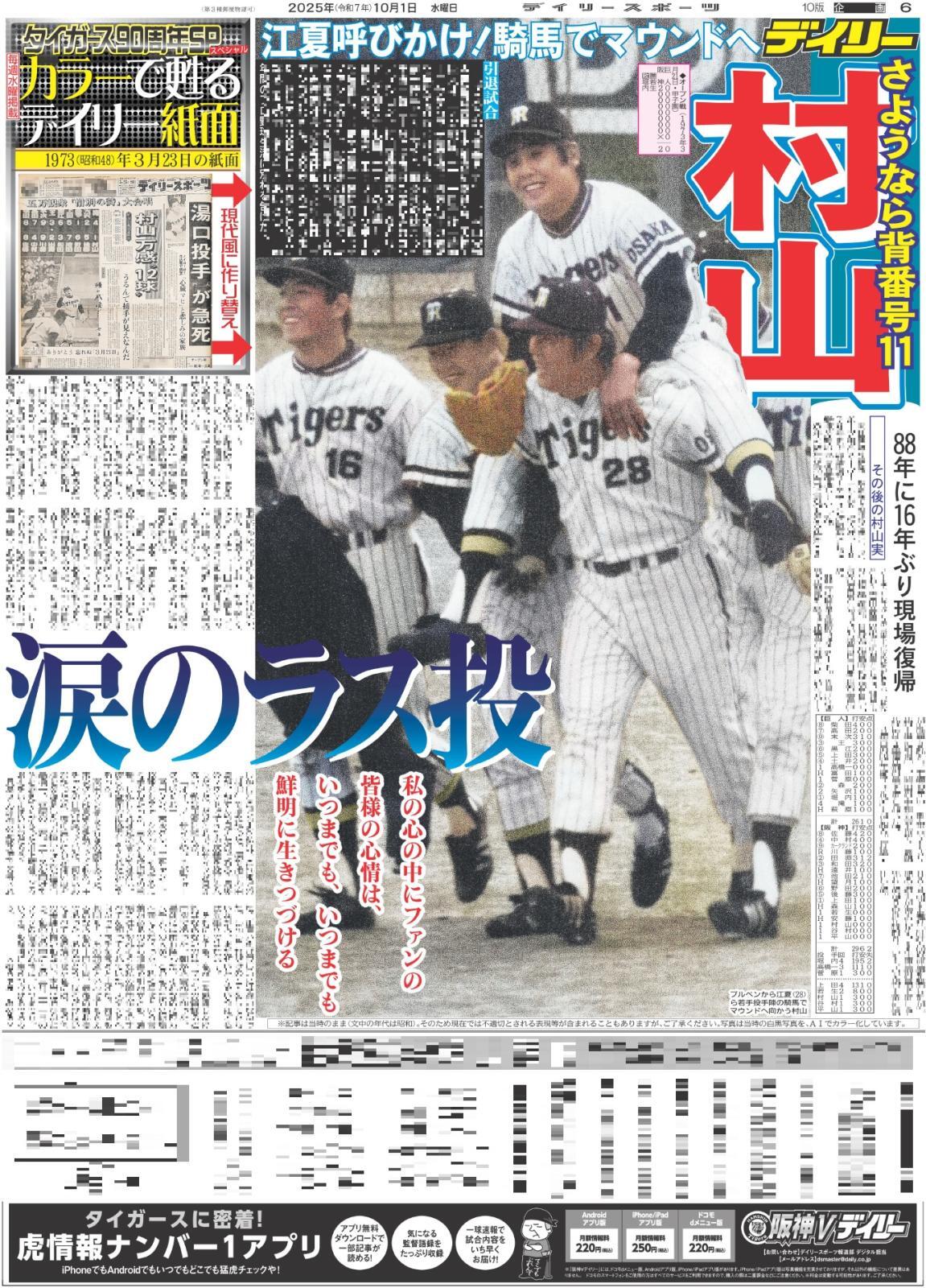 ・中面:カラーで甦るデイリー紙面 【村山 涙のラス投】