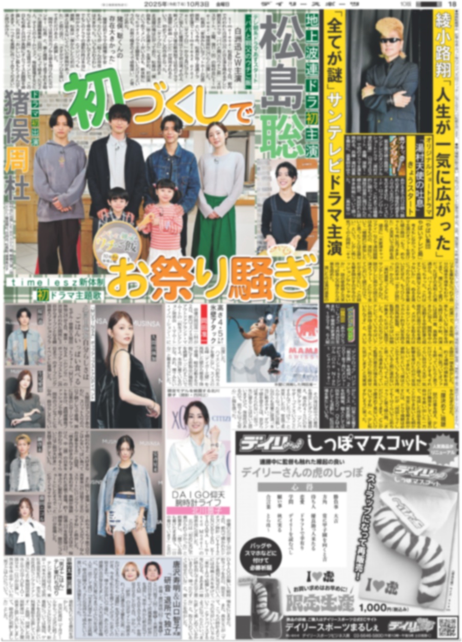 超特急 等身大の13号車 アロハ / timelesz 松島聡 猪俣周杜 初づくしでお祭り騒ぎ(東京版)2025年10月3日付