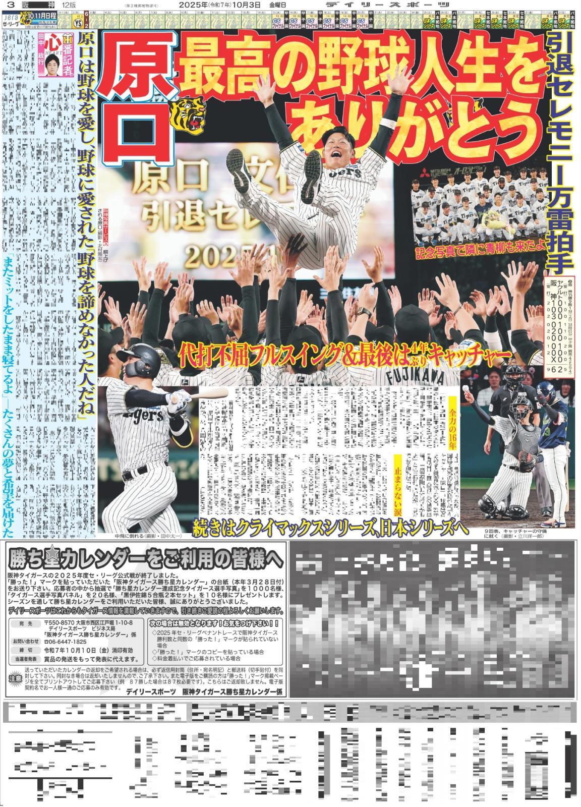 ・中面:原口 最高の野球人生をありがとう