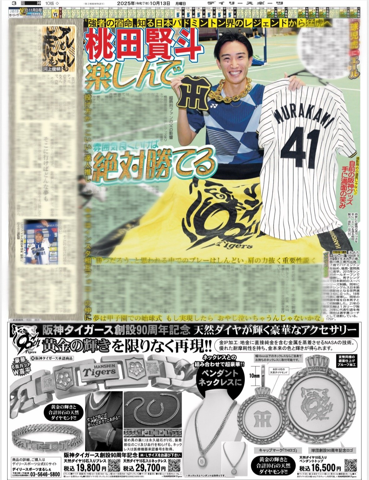 ・中面:球児虎にエール 桃田賢斗 楽しんで 絶対勝てる