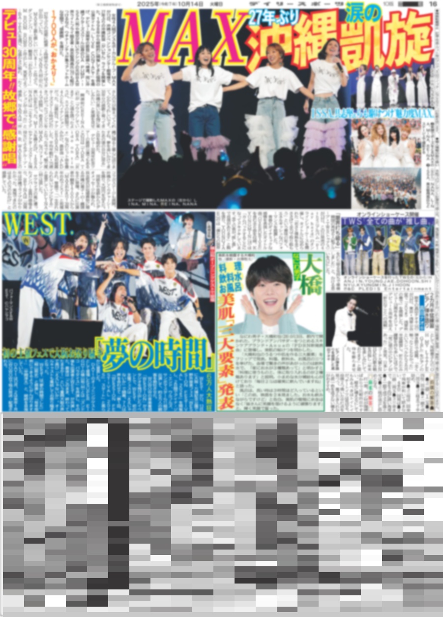 CUTIE STREET めいくあっぷの旅完走 / LE SSERAFIM 初披露 / WEST. 「夢の時間」 / なにわ男子 大橋に美肌「三大要素」発表(東京即売版)2025年10月14日付