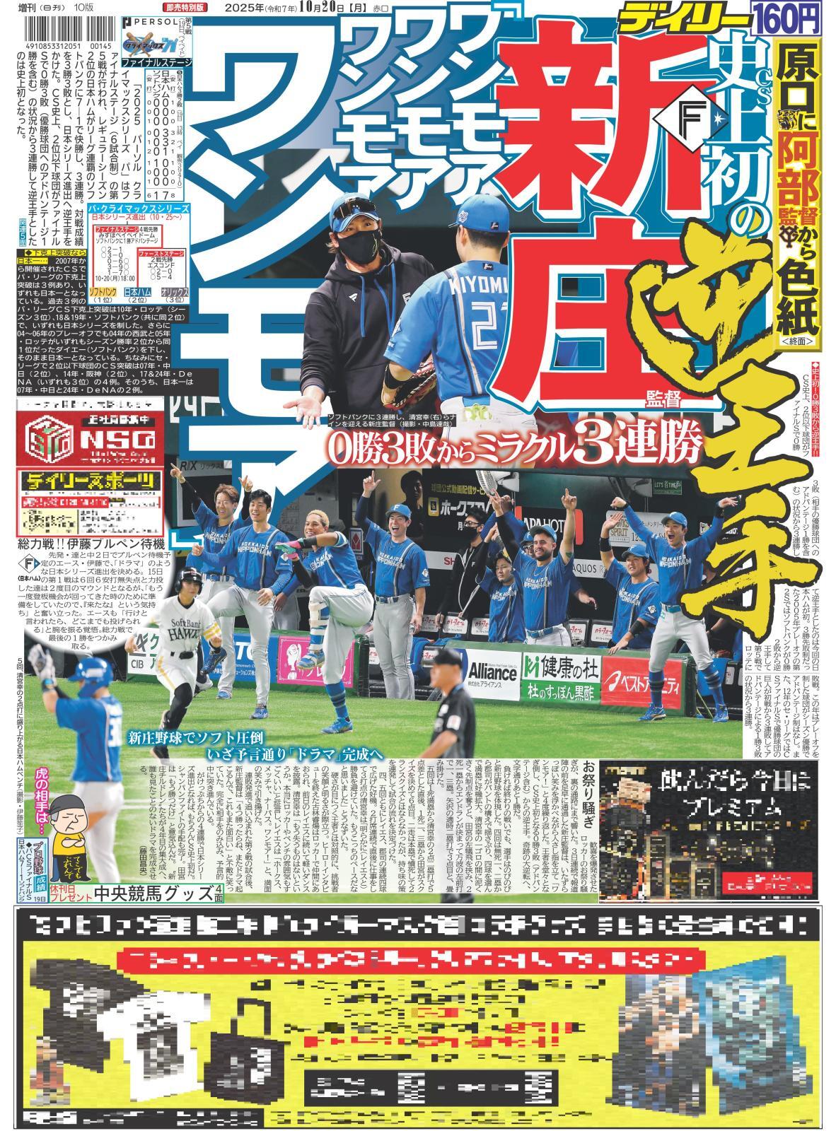 ・一面:史上初の逆王手 新庄監督「ワンモア ワンモア ワンモア ワンモア」