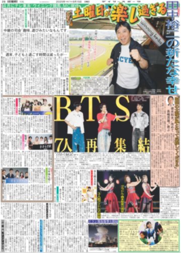 ★掲載内容:BTS,JIN,J-HOPE,JUNG KOOK,SMILE-UP.,STARTO,Hey!Say!JUMP,伊野尾慧,松本穂香,s**t kingz, LDH,FANTSTICS, 木村彗人,中島颯太,譜久村聖,川上千尋,松谷鷹也,日比美思,杉良太郎,岡田彰布,デュプランティエ,西純也,木下里都,ワールドシリーズ,ドジャース,山本由伸,下柳剛