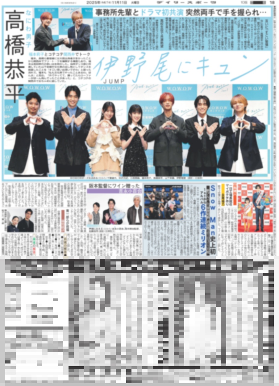 なにわ男子 高橋恭平 JUMP 伊野尾にキュン(東京版)2025年11月11日付 [DSBN-20251111]