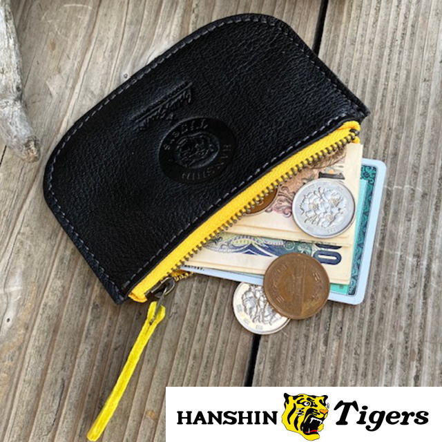 【阪神タイガース×ベルズスクエア】丹波炭黒の鹿革☆兵庫ジビエレザーファスナーポーチ!小銭&お薬入れに