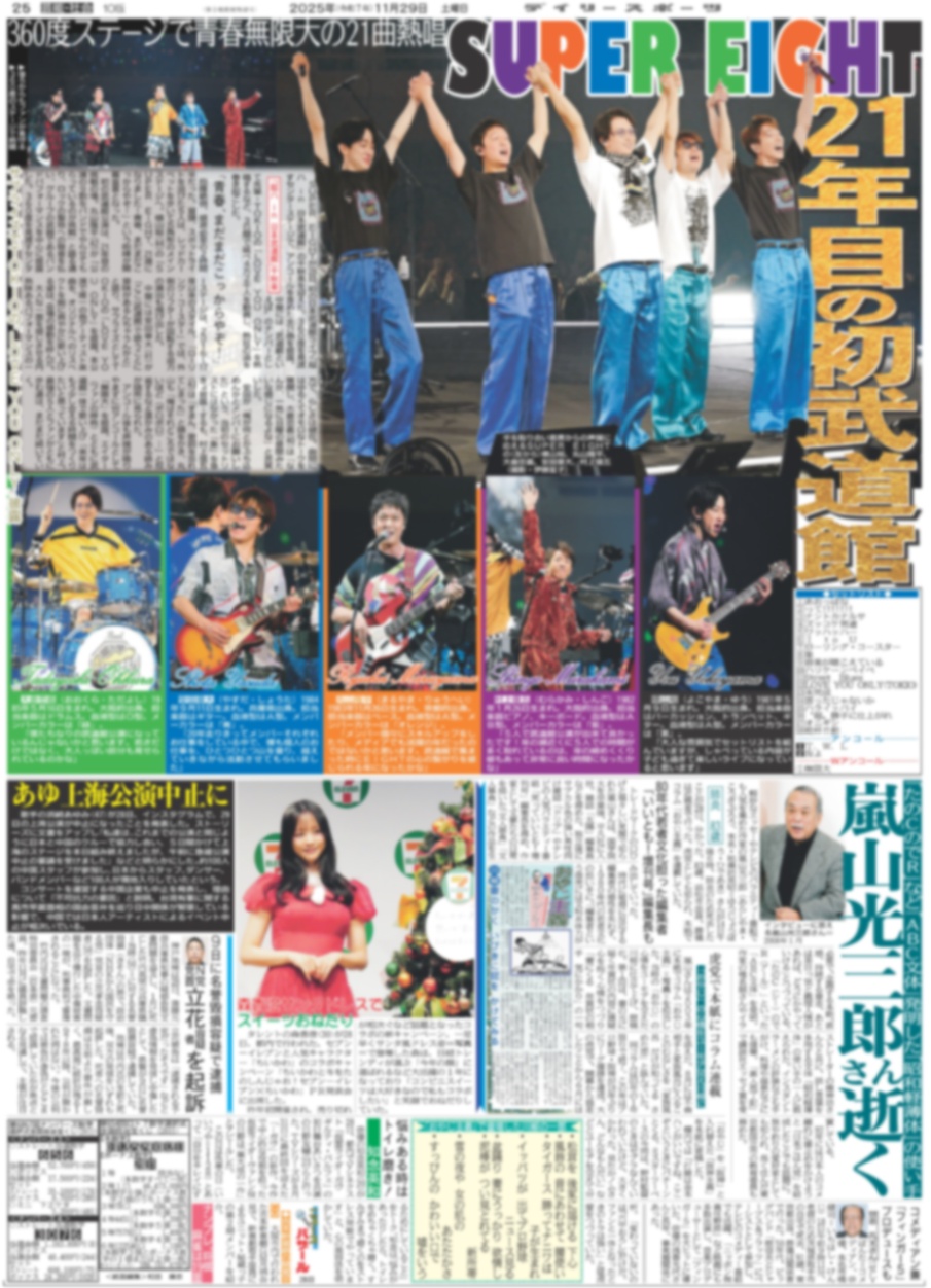 SUPER EIGHT 21年目の初武道館(東京10版)2025年11月29日付