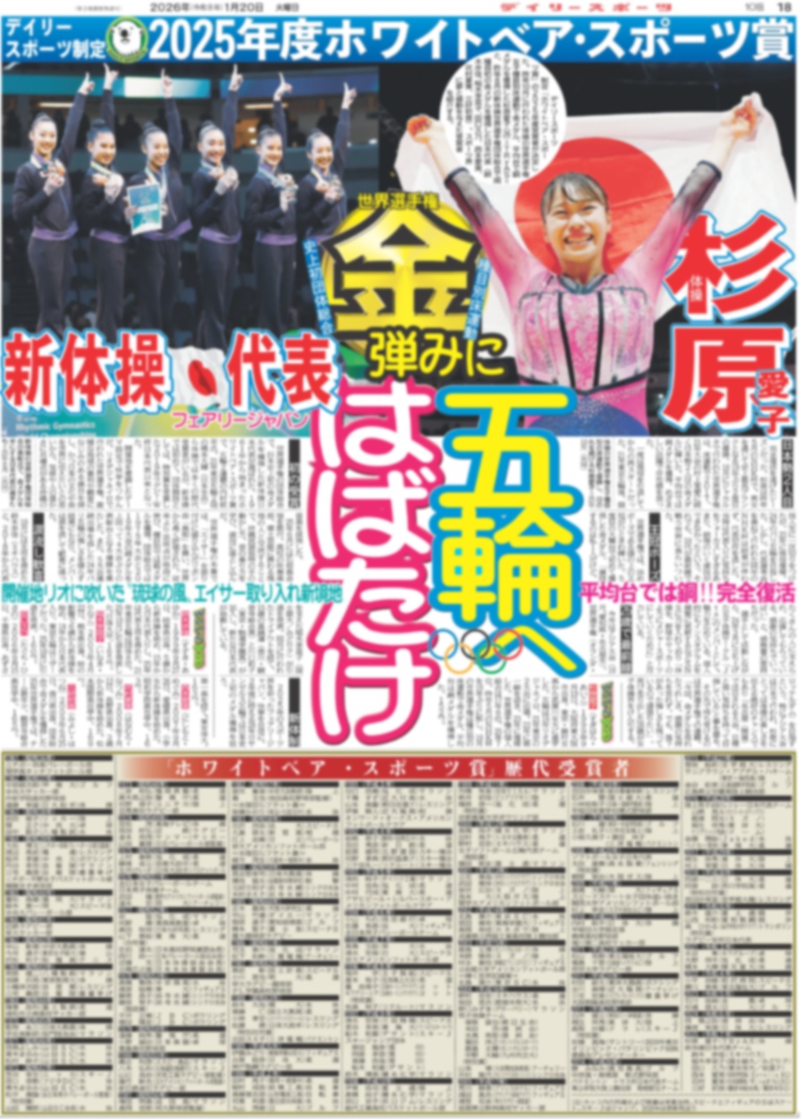 ・終面:2025年度ホワイトベア・スポーツ賞 杉原愛子 新体操代表