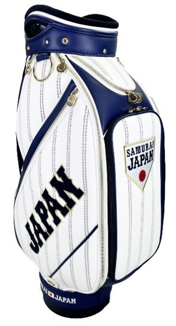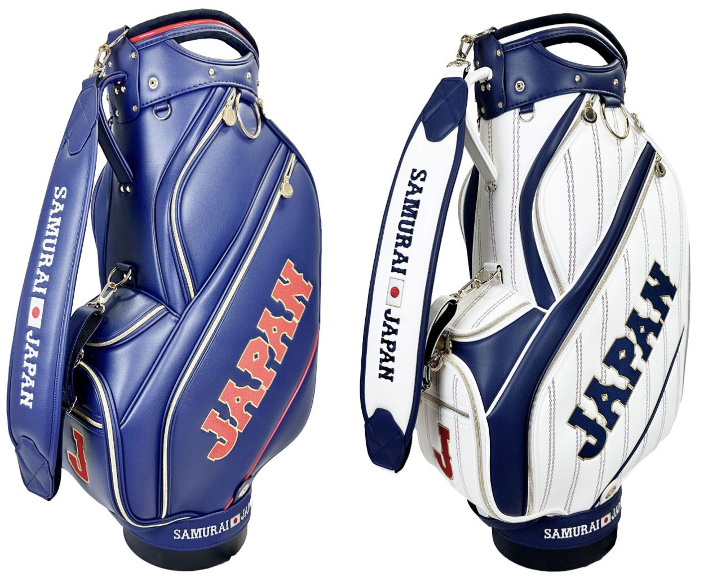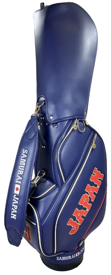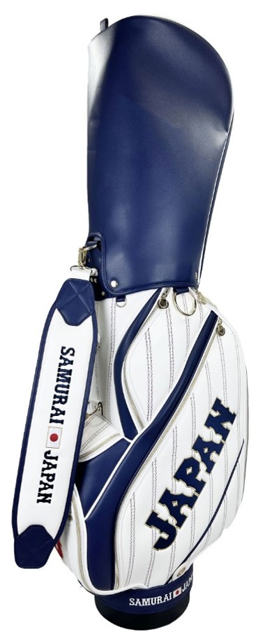 SAMURAI JAPAN 正規ライセンスキャディバッグ 2026年モデル。全面に高品質な合成皮革を使用し、刺繍ロゴが際立つ高級感あふれるキャディバッグです。 口枠仕様:5分割、2セパレーター構造、起毛素材を使用 機能性:口枠両サイドに持ち手を配置し、持ち運びやすさを追求 付属品:フード、ショルダーベルト、名札付き 背袋:着脱式で、刺繍による名入れも可能 ゴルフ場で注目されること間違いなし! 野球ファン、ゴルフ好きな方におすすめのアイテムです。