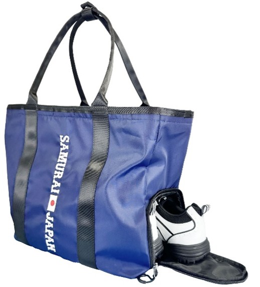SAMURAI JAPAN 正規ライセンス トートバッグ 2026年モデル。ネイビー生地にSAMURAI JAPANのロゴが映えるスタイリッシュなトートバッグ。 サイドにはシューズポケットを搭載し、メイン収納内部には13.3インチサイズのパソコンが収まる専用ポケットを備えています。 収納力:2〜3泊の旅行や出張にも対応できる最適サイズ 機能性:シューズポケット、PCポケット付きで使い勝手抜群 デザイン:SAMURAI JAPAN公式ロゴを採用した特別仕様 オンでもオフでも活躍する実用性とデザイン性を兼ね備えたアイテム。 ゴルフ好きな野球ファンにおすすめのトートバッグです。