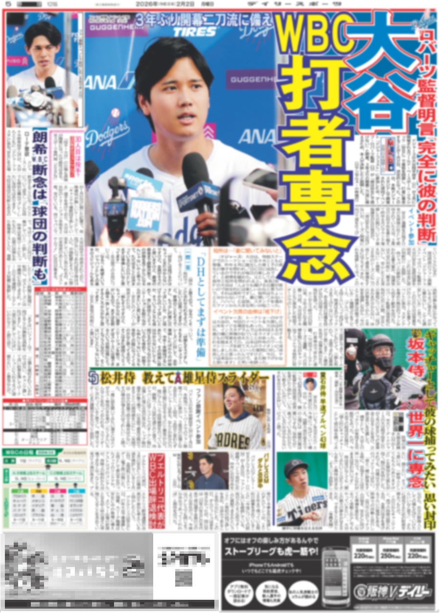 ・中面:大谷 WBC 打者専念