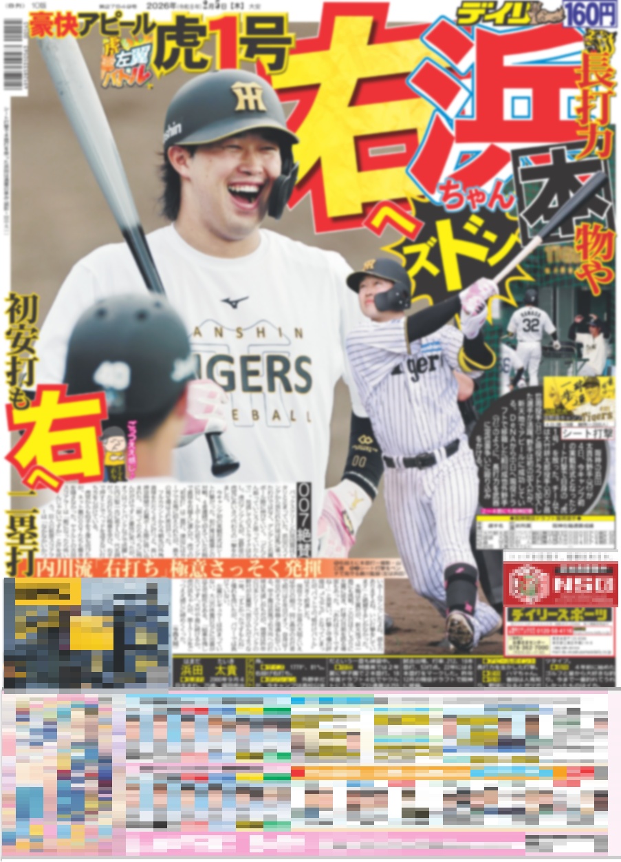 ・一面:浜ちゃん 右へズドン 長打力本物や