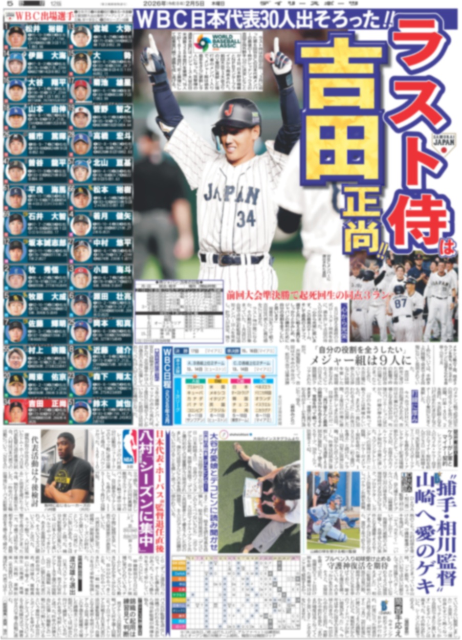 ・中面:ラスト侍は吉田正尚 WBC日本代表30人出そろった!