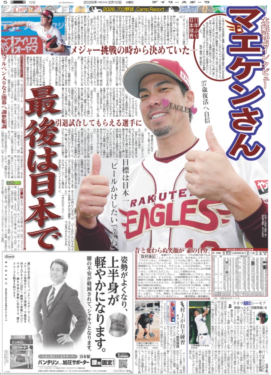 ・中面:マエケンさん 最後は日本で 本紙独占インタビュー