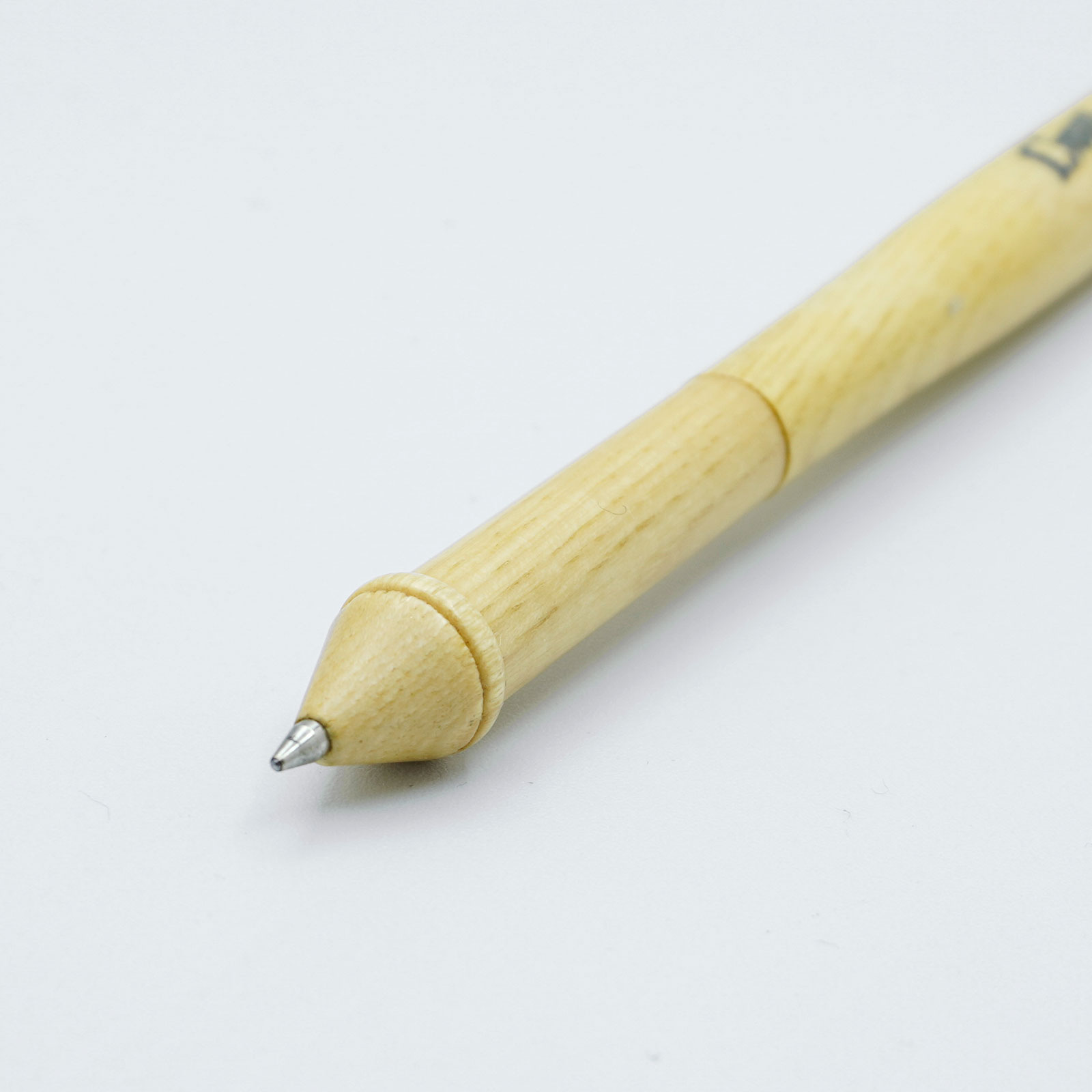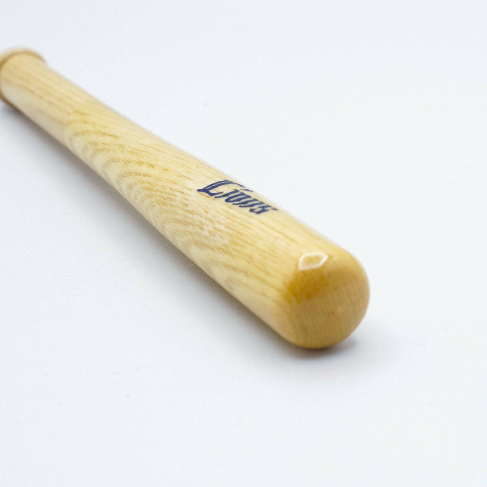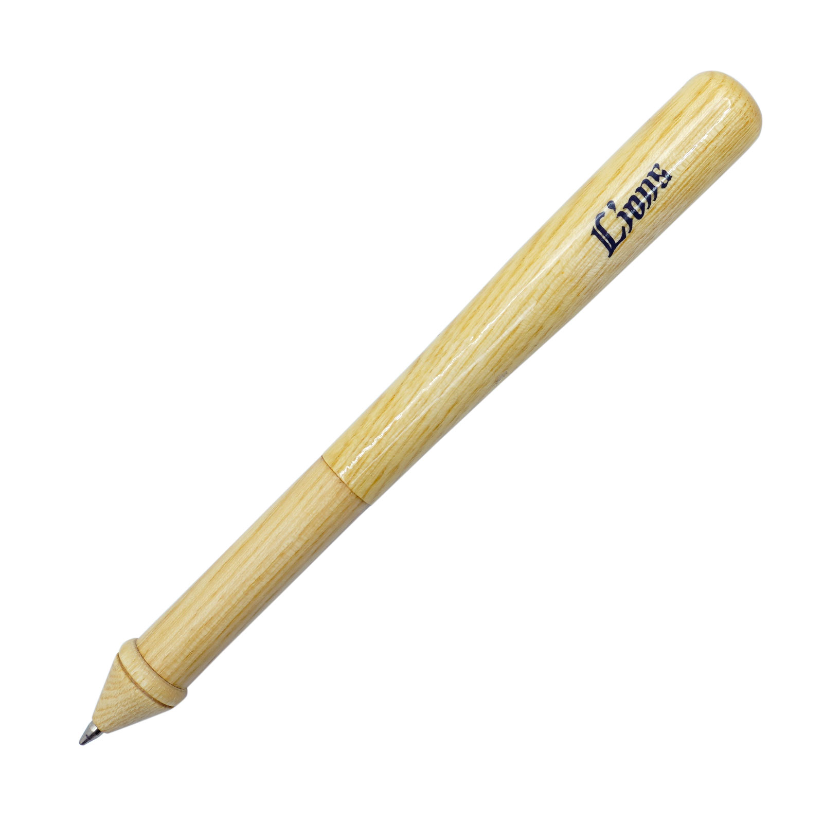後ろ軸を回転されるとペン先が出てきます。プロ野球界を中心に社会人野球や大学野球等で使用された後、役目を終えた折損バットの再利用で出来ています。