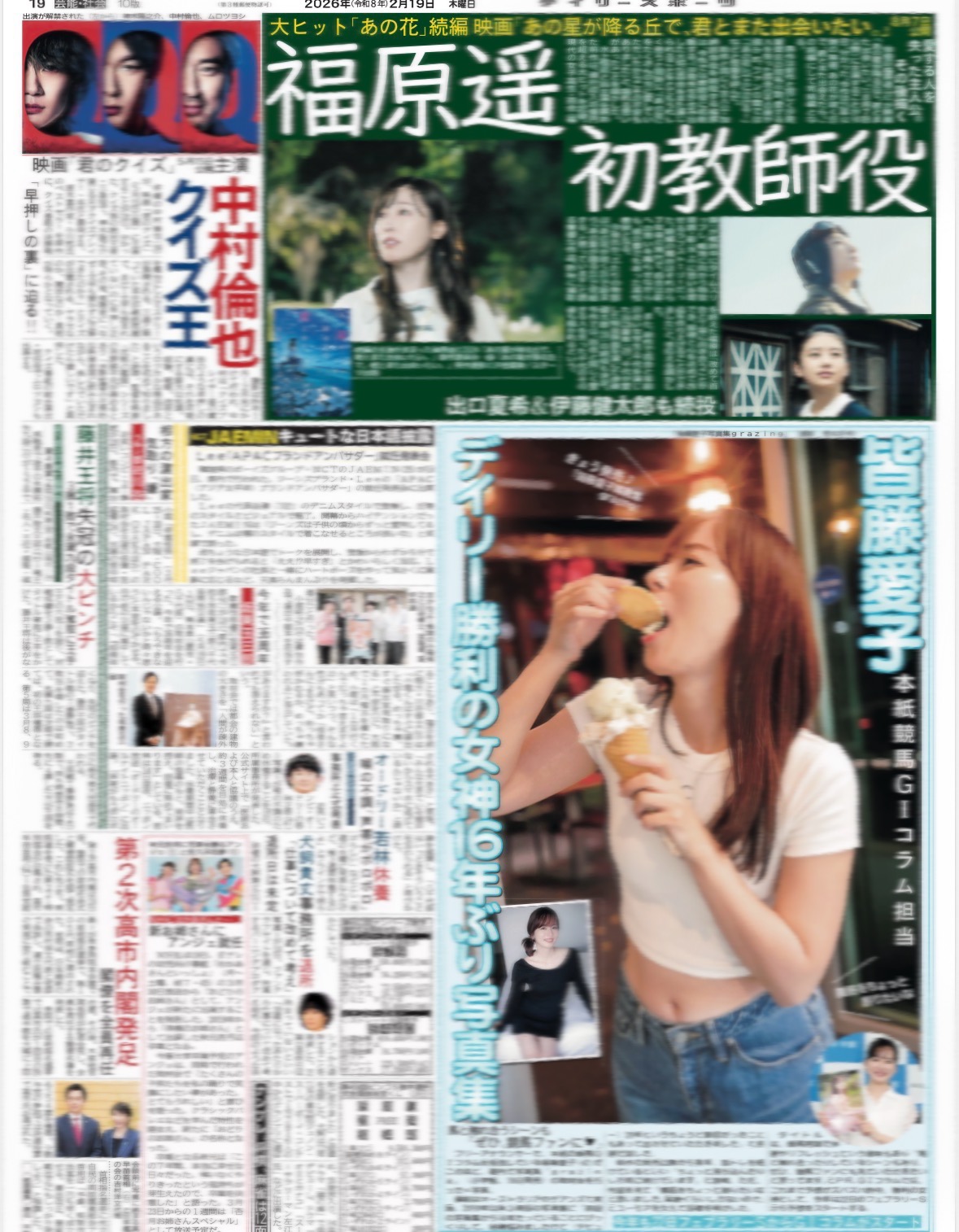 ★掲載内容:SMILE-UP.,STARTO,King&Prince,永瀬廉,高橋海人,皆藤愛子,福原遥,中村倫也,神木隆之介,ムロツヨシ,ミラノ・コルティナ五輪,中井亜美,高木美帆,野明花菜,佐藤綾乃,笑福亭鶴瓶,立石正広