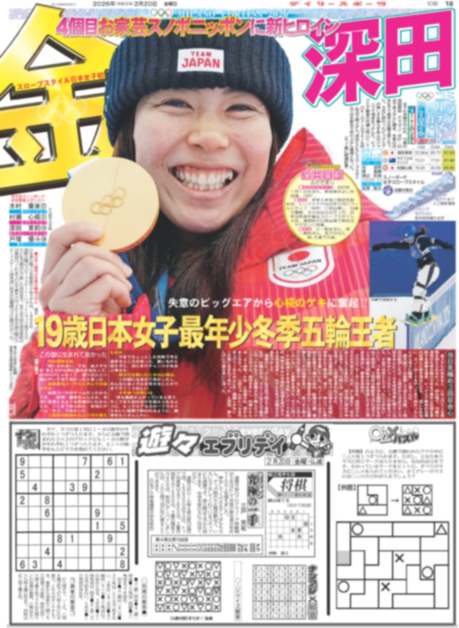 ・終面:深田 金 19歳日本女子最年少冬季五輪王者