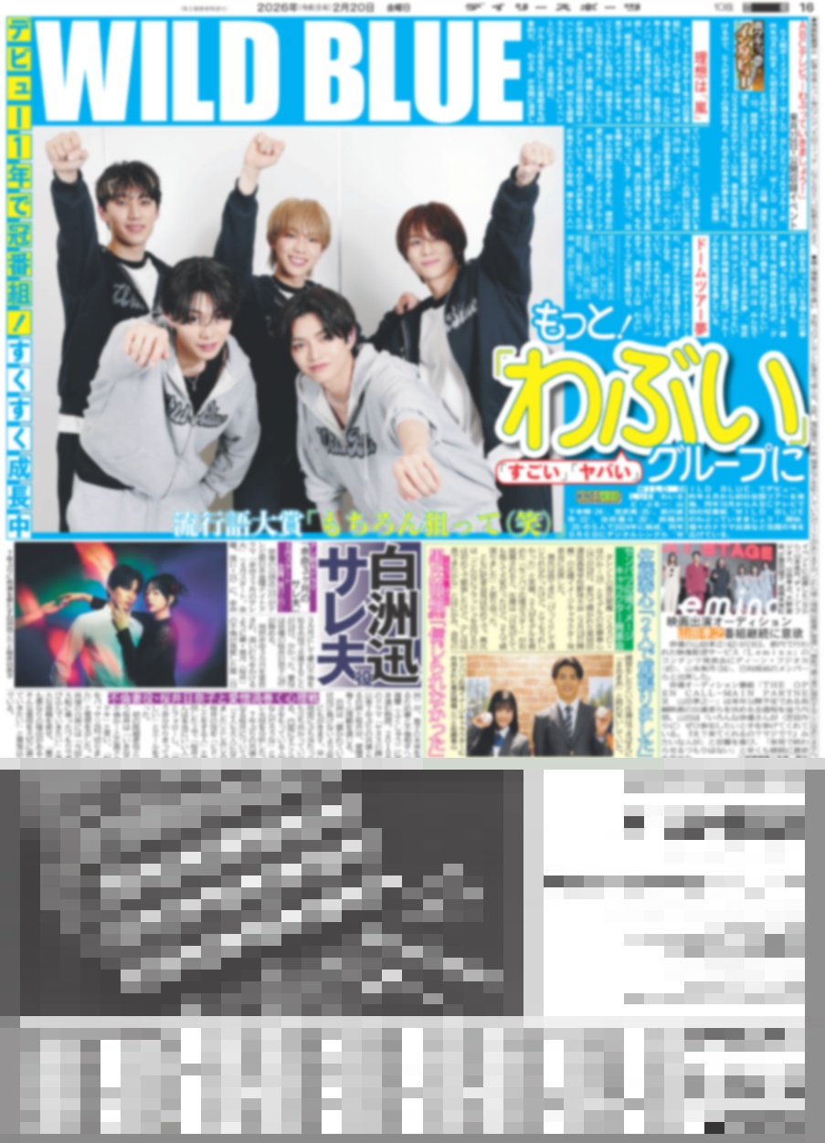 WILD BLUE もっと!「わぶい」グループに / ちょっとつややかな 佐久間大介 / ACEes 作間龍斗 23歳で父親役に挑戦(東京版)2026年2月20日付 [DSBN-20260220]