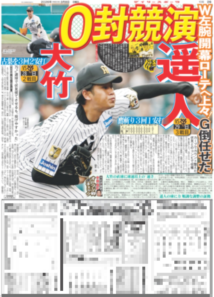 ・一面:大谷 誠也 正尚 メジャー3連発