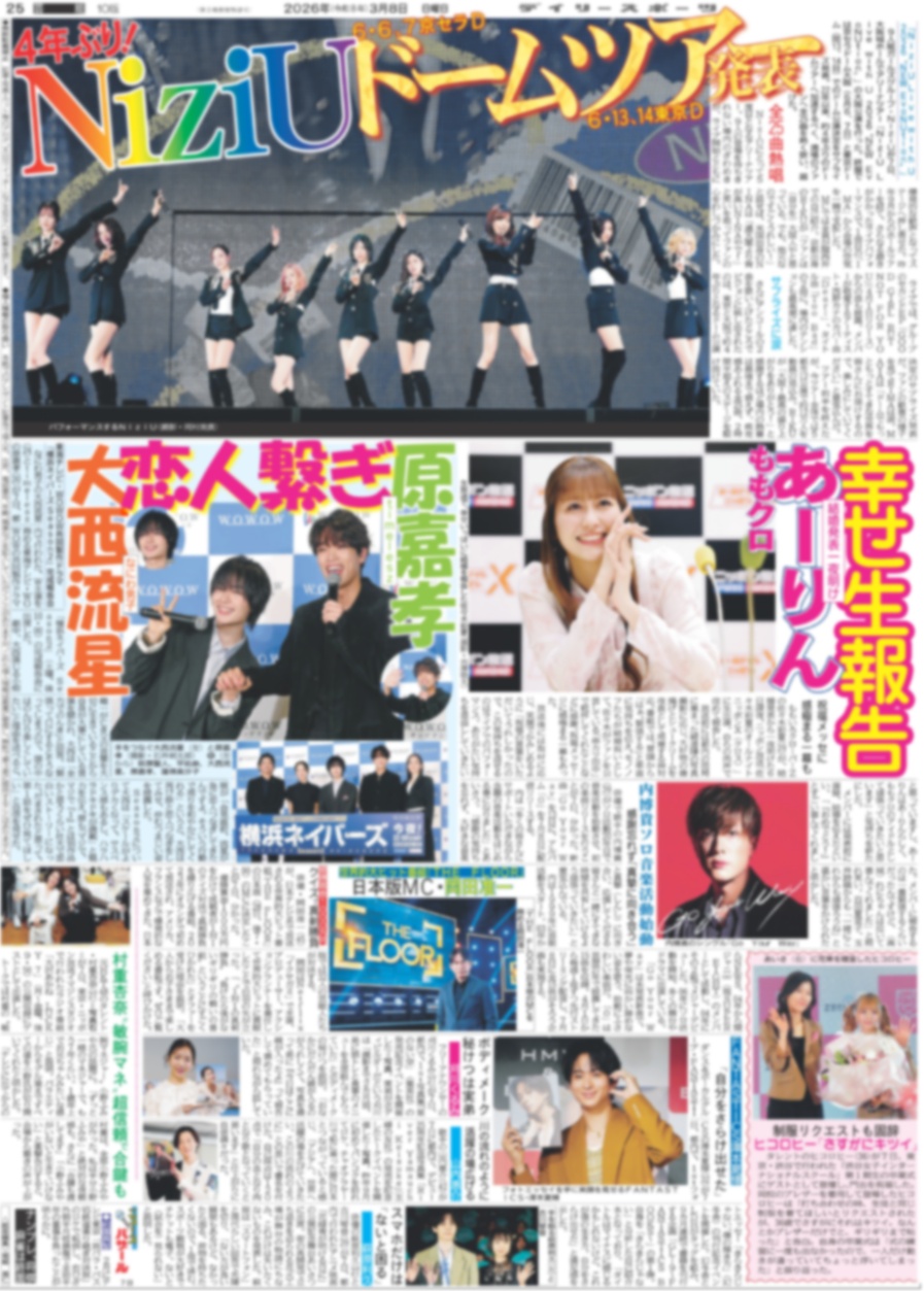 notte stellata 羽生結弦 / NiziU ドームツアー発表 / 大西流星 原嘉孝 恋人繋ぎ(東京10版)2026年3月8日付