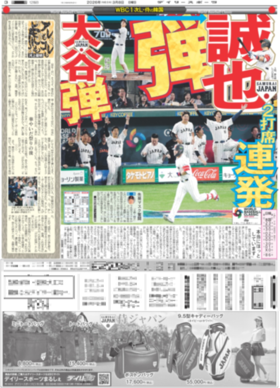 notte stellata 羽生結弦 / NiziU ドームツアー発表 / 大西流星 原嘉孝 恋人繋ぎ(東京12版B)2026年3月8日付 [DSBN-20260308(12B)]