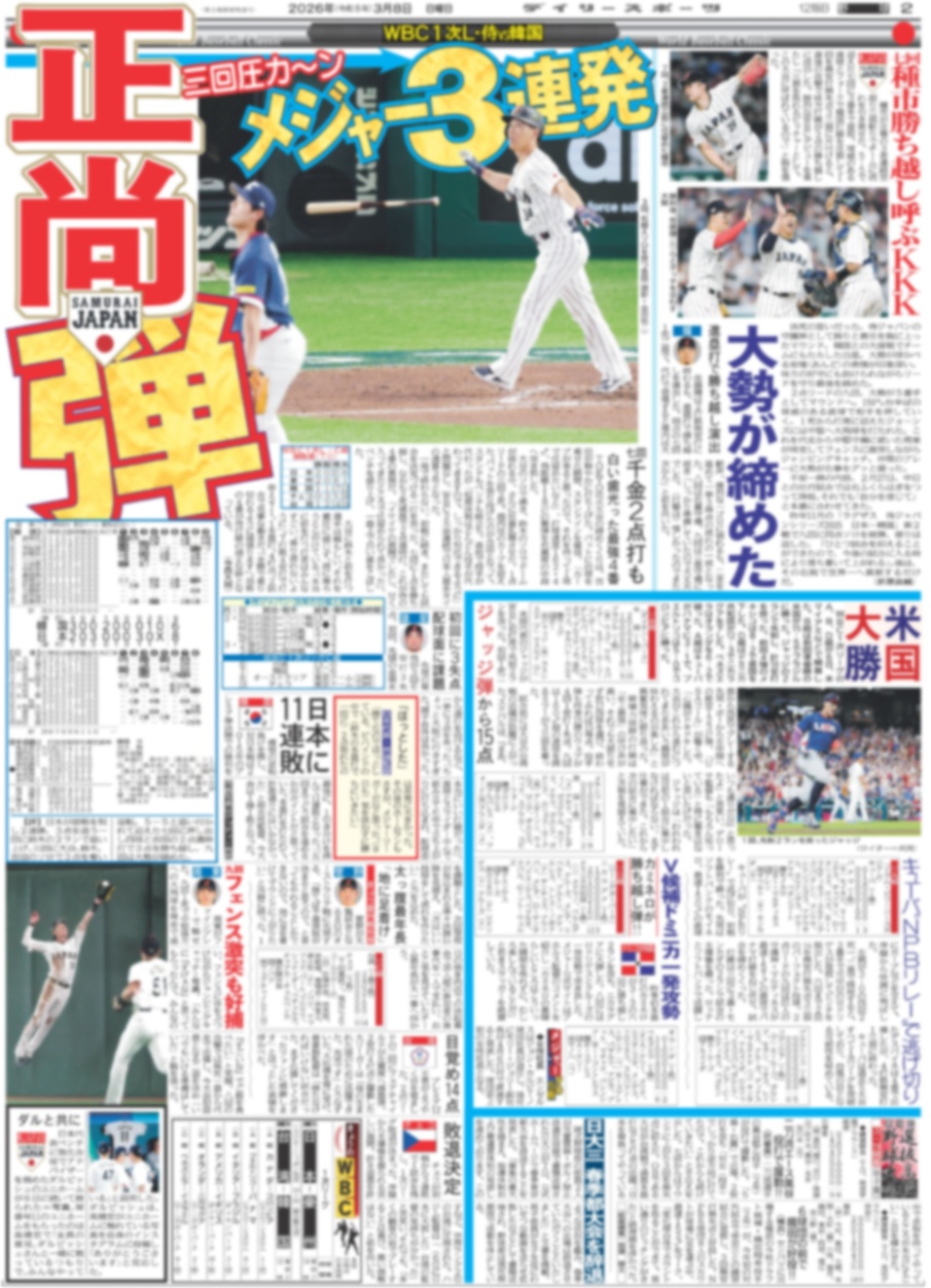 notte stellata 羽生結弦 / NiziU ドームツアー発表 / 大西流星 原嘉孝 恋人繋ぎ(東京12版B)2026年3月8日付