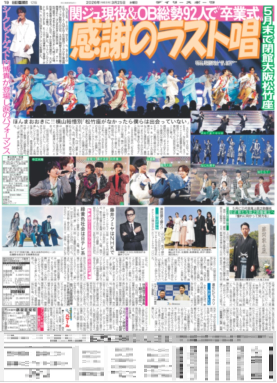 感謝のラスト唱 関ジュ現役&OB総勢92人で卒業式 / The LDH Times ÜSA MATSU MAKIDAI 運命共同体(東京版)2026年3月25日付 [DSBN-20260325]