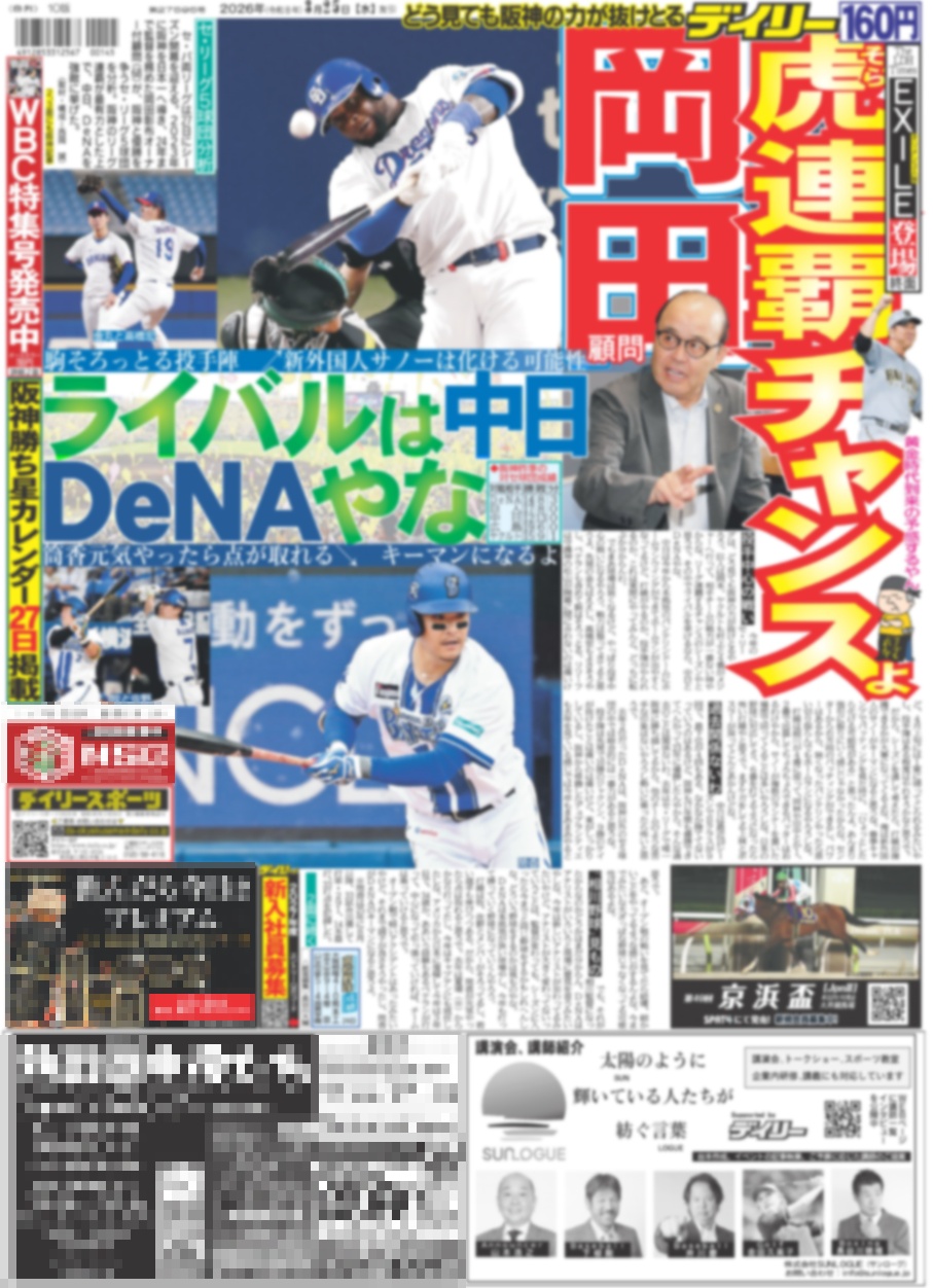 ・一面:岡田顧問 虎連覇チャンスよ