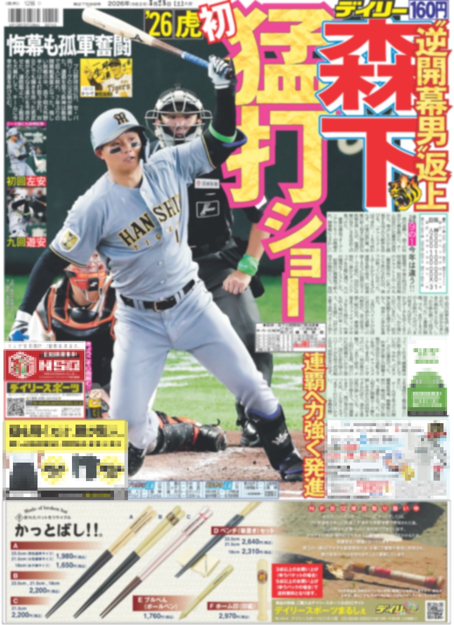 ・一面:森下 猛打ショー 逆開幕男返上