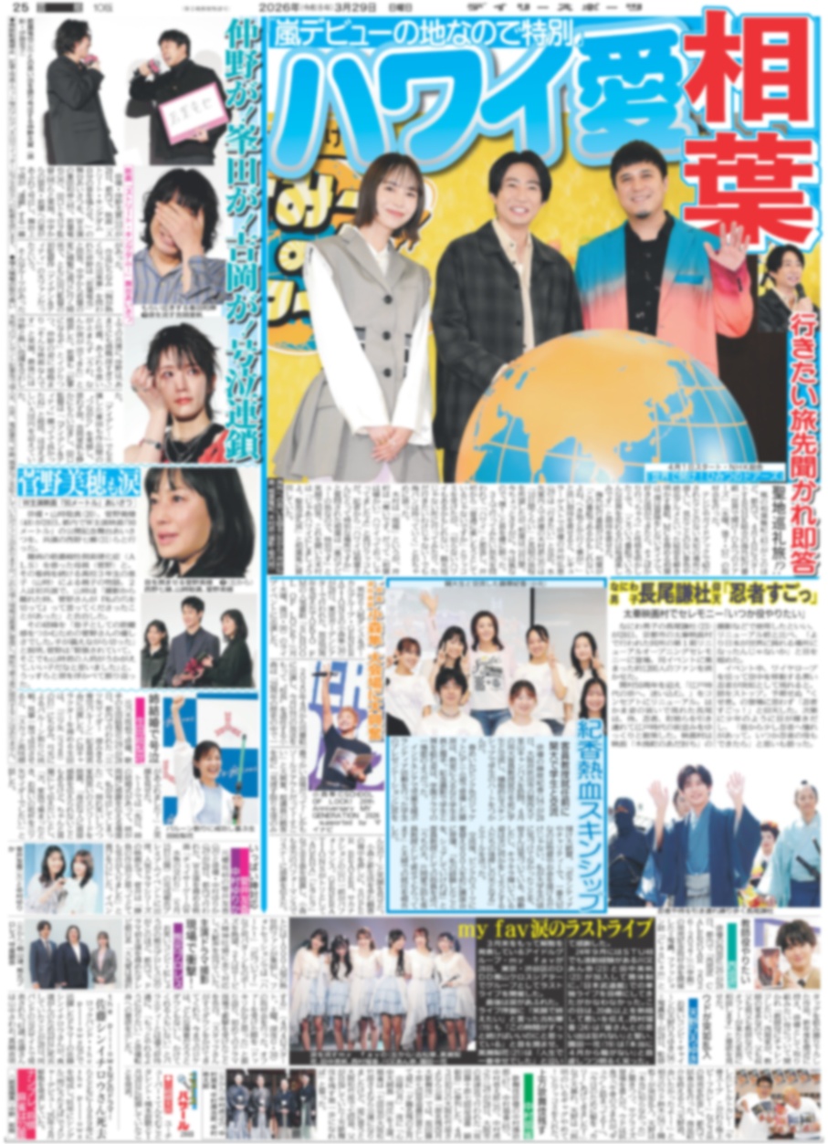 相葉 ハワイ愛 / なにわ男子 長尾謙杜「忍者すごっ」/ 坂本 有終 4度目世界一(東京版)2026年3月29日付 [DSBN-20260329]