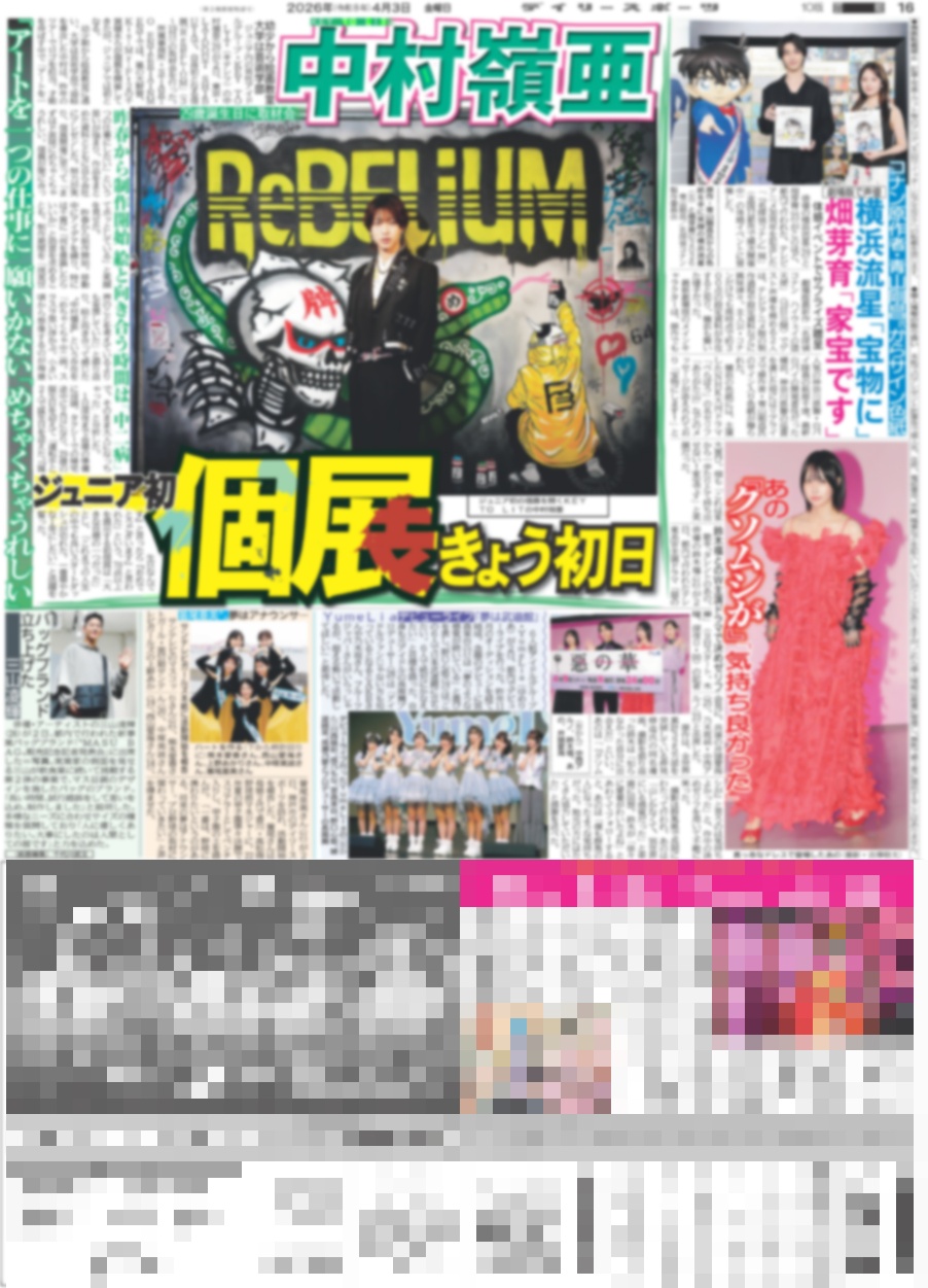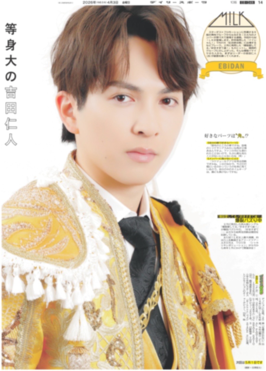 M!LK 等身大の吉田仁人 / 平野紫耀「自分自身を愛して」/ KEY TO LIT 中村嶺亜 ジュニア初個展きょう初日(東京版)2026年4月3日付 [DSBN-20260403]