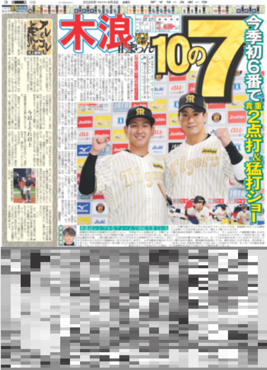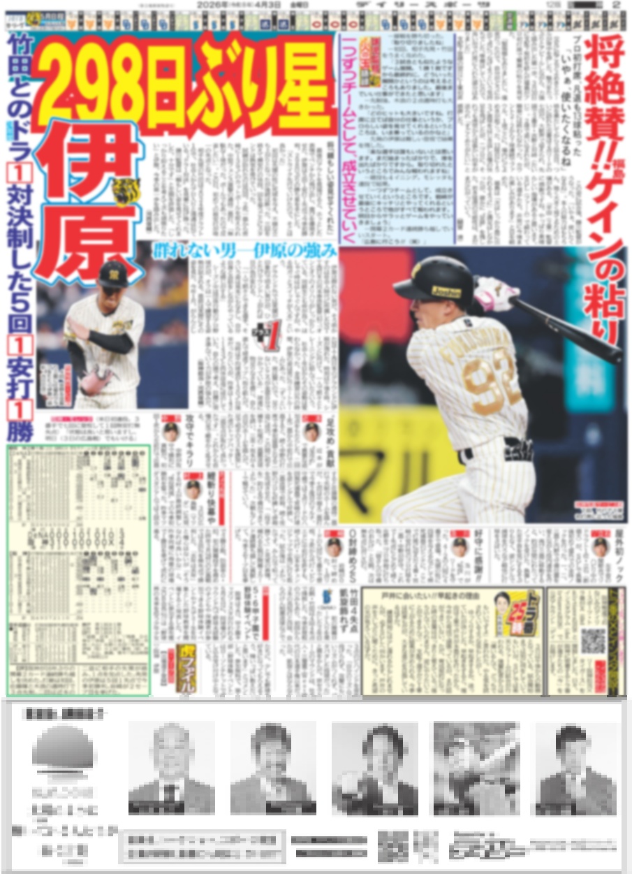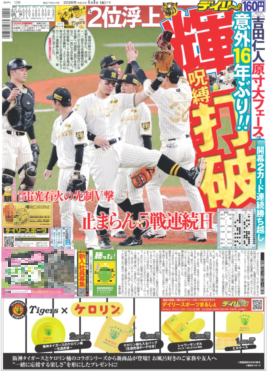 ・一面:輝 呪縛打破 意外16年ぶり!!開幕2カード連続勝ち越し