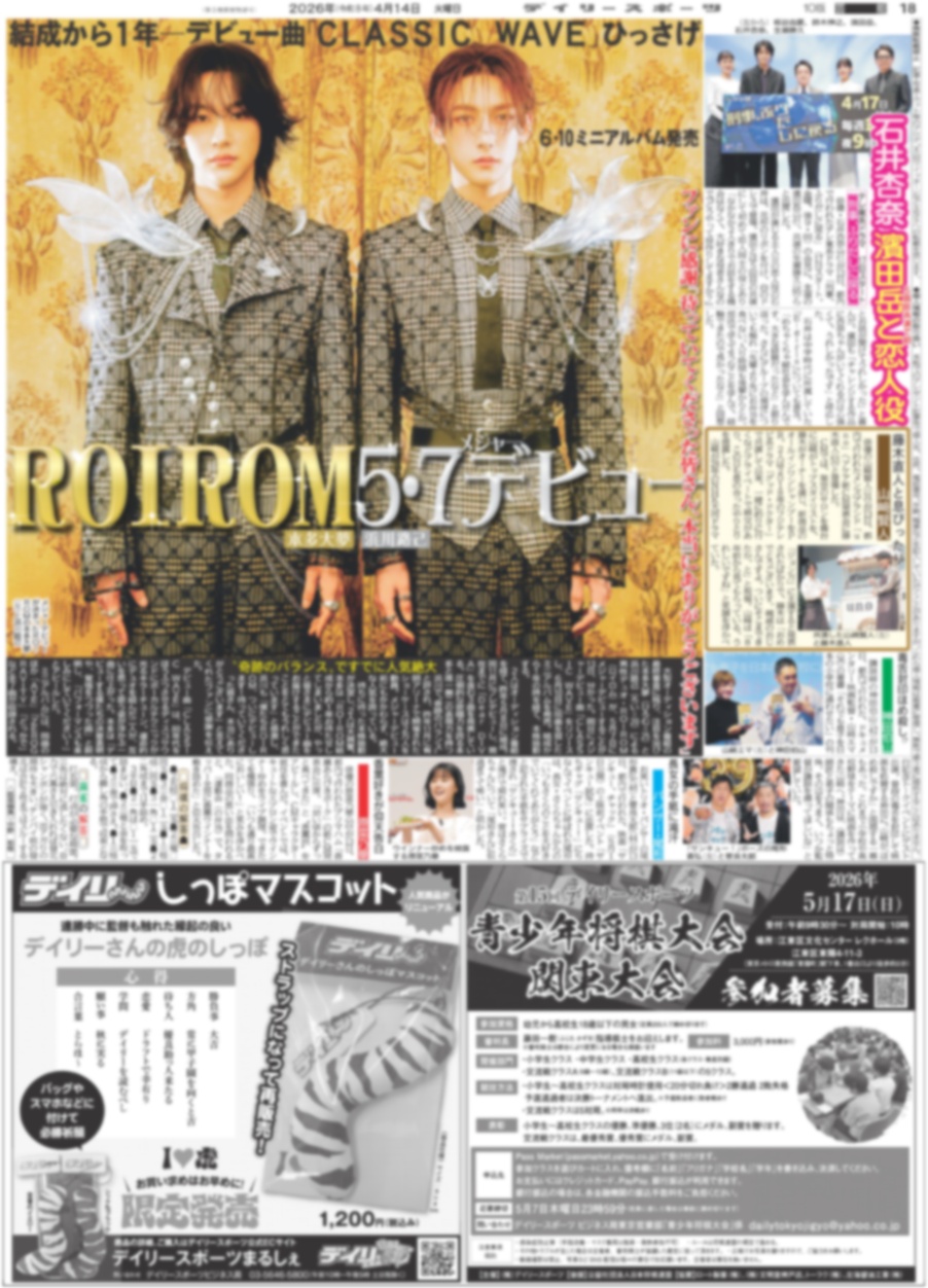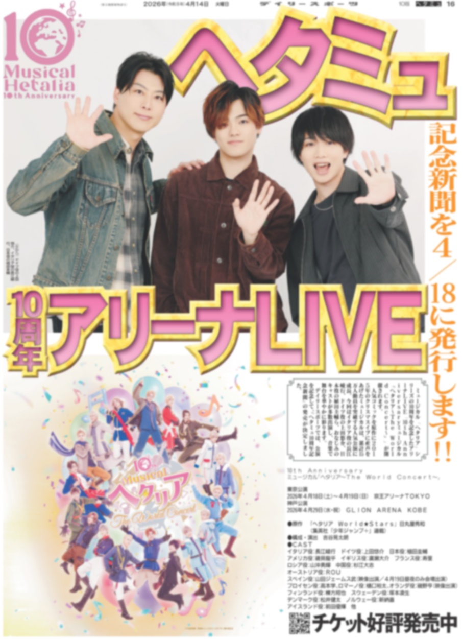 ヘタミュ10周年アリーナLIVE / 光一 ホスト アリーナツアー / ROIROM 5.7デビュー(東京版)2026年4月14日付