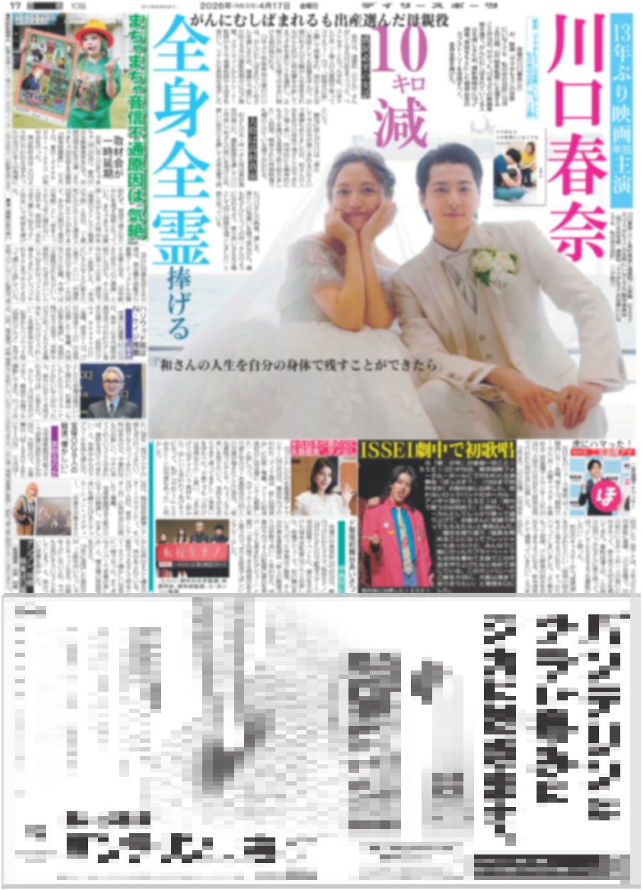 ・中面:川口春奈 10キロ減 全身全霊捧げる