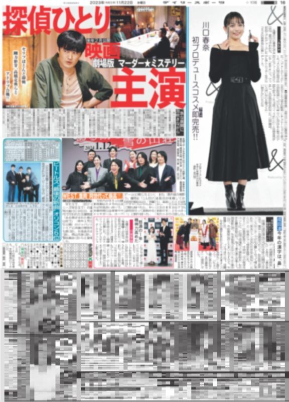 ★掲載内容:阪神タイガース,岡田監督,梅野隆太郎,岩崎優,ジャパンカップ,川田将雅,リバティアイランド,ルメール,イクイノックス川口春奈,劇団ひとり,ある閉ざされた雪の山荘で,WEST.,重岡大毅,中条あやみ,堀田真由,西野七瀬,間宮祥太朗,川栄李奈,鈴木伸之,ビートルズ,日本レコード大賞,レコ大,勝地涼,町田啓太